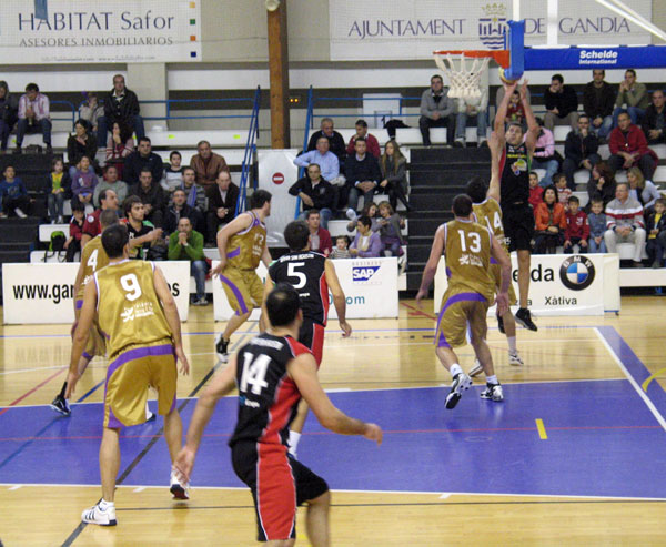 A falta de 4 minutos, con empate a 75 en el luminoso, se produjo la ruptura del partido que, si bien fue para los locales, bien pudo haber sido para los visitantes. Tres triples consecutivos de Fabio, Burgos y Alvarado, sólo contrarrestado por otro de Carrasco, ponían un 84-78 que ante la igualdad existente, suponían un pesado lastre a falta de poco menos de tres minutos. Ni el tiempo muerto de Matías Cerdà ni la presión de sus jugadores pudieron recortar ya la diferencia ante un Gandía que, haciendo gala de su veteranía, controlaba perfectamente los últimos minutos e incluso la aumentaba dejando un definitivo 94 a 82 que era la máxima ventaja del partido y que no reflejaba de ninguna de las maneras lo acontecido sobre el parquet.