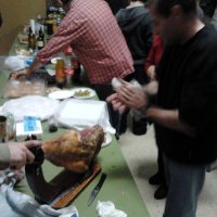 (Fotos: "nos comimos el jamón de la presentación, que tocó a la familia de Laia Ruiz, en equipo")