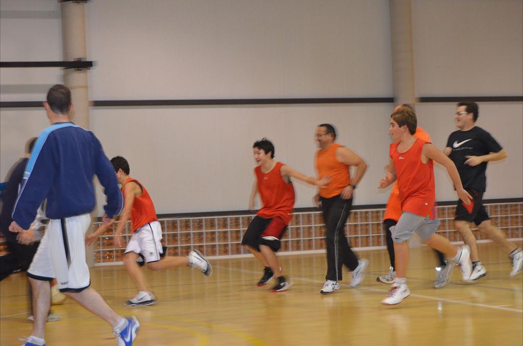 Per això dia 5 els pares se varen vestir d'esportistes (encara que alguns no podien amagar la panxa que passetjen) i varen botar a la pista per demostrar als jugadors que alguns encara conserven les qualitats de quan jugaven, i els qui no ho han fet mai lo que han aprés a força de veure entrenaments i partits.